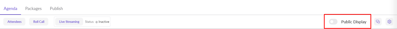 To access the Public Display, select the Public Display toggle in a meeting. This toggle will appear, when you are in Meeting (In-Session) mode.