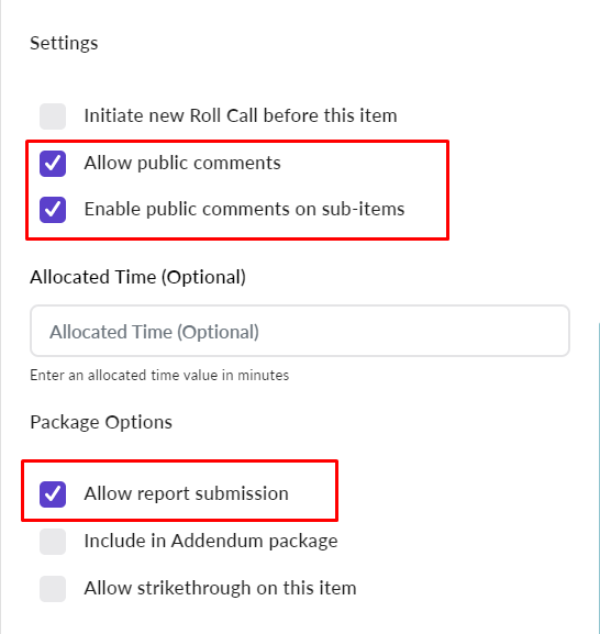 When adding items, scrolling down this flyout will allow Administrators to add additional information like Special Action, initiating new Roll Call before the item, Page Breaks, etc.