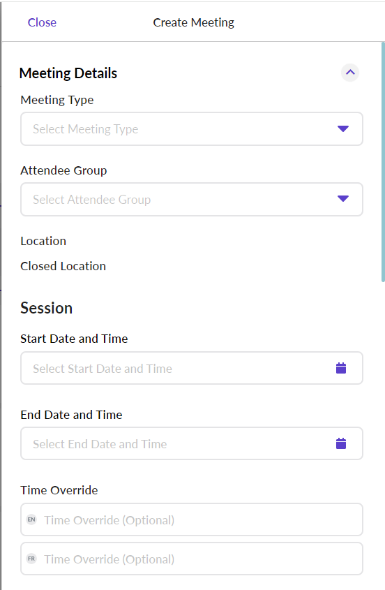 From the drop-down, select which type of Meeting to create. The Meeting Type will drive the template that is selected as the starting point for the meeting. |