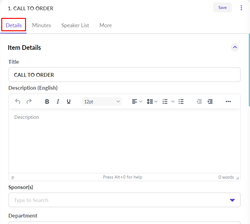 This article explains the fields found when adding or editing an Agenda Item's Details.
