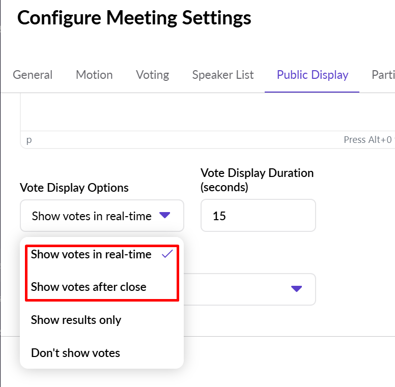 Step 1: Vote Display Options