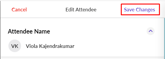Once the attendee's details load, you can modify the details as required and click Save Changes.