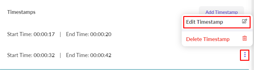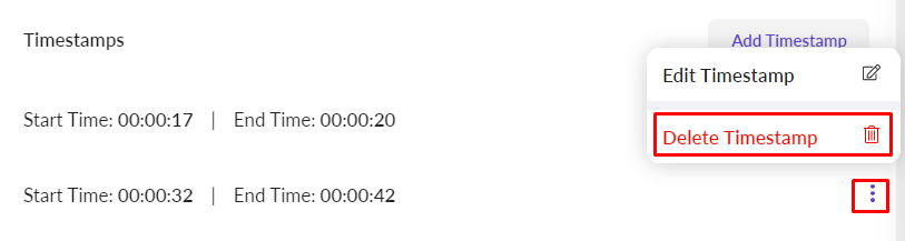 If any bookmarks were added in error, it can be deleted by clicking on its options menu and clicking Delete Timestamp.