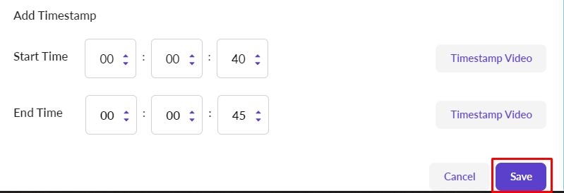 Enter the start time and end time for the timestamp. After completion, click on Save.