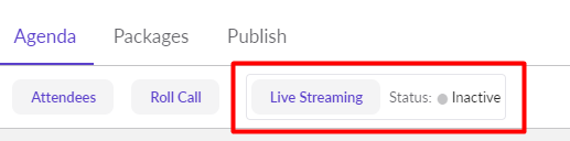 Just before the meeting, when you are ready to start recording and streaming, simply toggle the Streaming and Recording options below the encoder preview on from the Live Streaming Details fly out. You can manage the streaming and recording separately by managing those toggles. The status will change from "Inactive" to "Streaming" or "Recording".