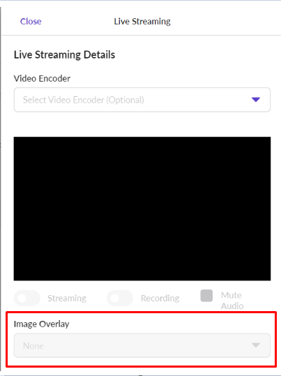 To display an Image Overlay, simply select it from the Image Overlay drop down from the Live Streaming Details fly out, and click Save.