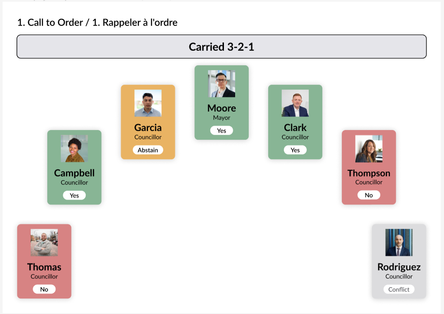 When opening the vote, the Agenda View changes to display the Agenda Item and the motion: