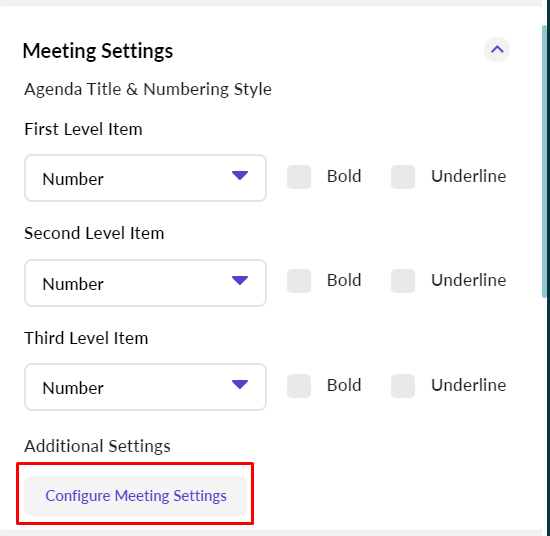 Under the Meeting Settings section, click on Configure Meeting Settings.