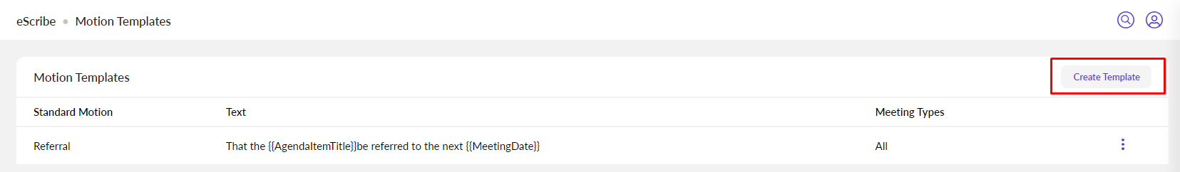Templates are sets of pre-defined text, which can be used for Motions or Minutes within an eScribe meeting as an efficiency tool or to further customize the output of minutes using free form text and smart tags. Configuring these templates with any commonly used snippets of text will allow you to create faster motions during the meeting.