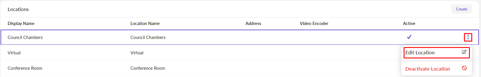 To edit the properties of an existing location, click on the options menu and select Edit Location.