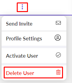 If you would like to delete a user you can do so by going to the User's Options Menu and selecting Delete User. This will permanently delete the user from eSCRIBE.