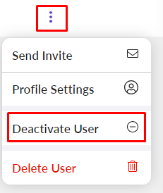 If you would like to deactivate the user's account, you will need to go to the user's Options Menu and select Deactivate User. This will allow their profile to still exist, but that user won't have access into eSCRIBE.