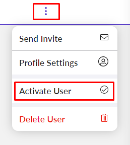 Administrators can reactivate users, by going to the user's Options Menu and selecting Activate User. This will reinstate their access to eSCRIBE.