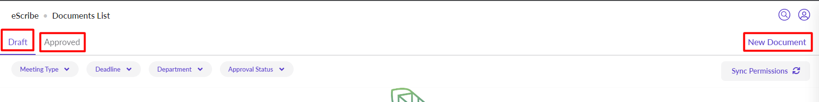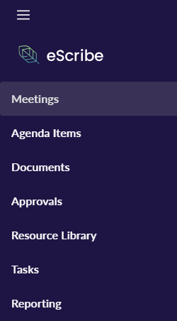 When new Contributors log into eSCRIBE for the first time, their view will different from what Administrators will see when they log in.