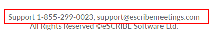 NOTE: If Users are having issues with logging into eSCRIBE, they will be able to contact the Support team with their contact information located at the bottom of the login page.
