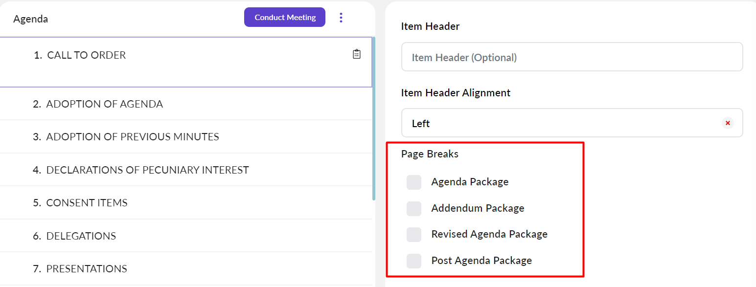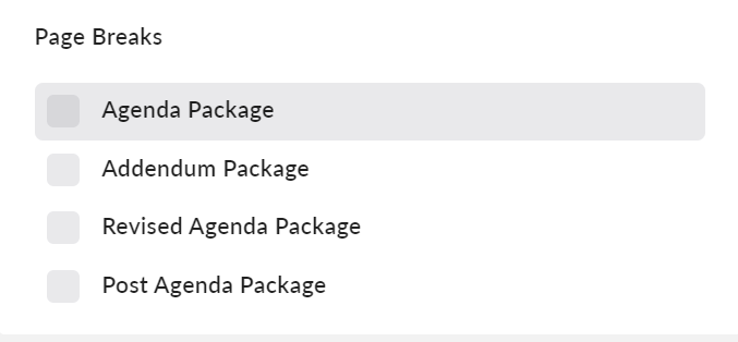 When creating your agenda packages, you can add page breaks to specific agenda items.