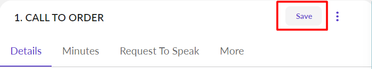 Go to Main Navigation Bar Meeting select specific Meeting select agenda item Details tab