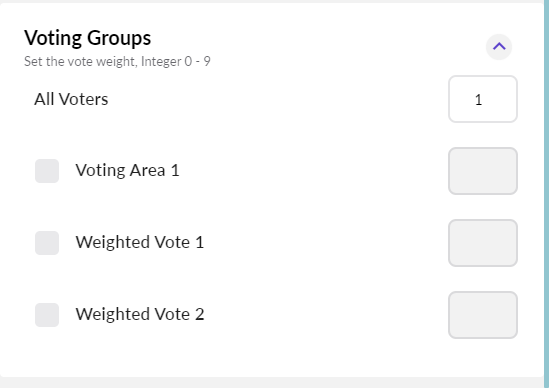 For scenarios where there is only one voting area, but each user has a different vote weight, simply add the vote weight into the text-box beside the “All” voting area.