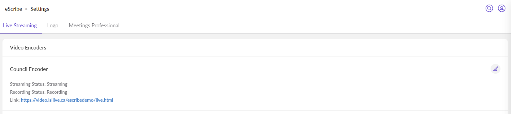 You can manage encoders from the Settings option from the Main Navigation Bar.